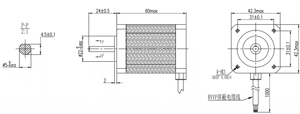 Шаговый двигатель с фланцем 42 мм (NEMA17), длиной корпуса 60 мм, имеет защищенный кабельный ввод, момент удержания 0,85 Н*м, корпус - пластинчатая кремниевая сталь, фланцы - дюраль, высококачественные подшипники DAHL/C&U обеспечивают минимальную вероятность проявления резонанса с их собственной частотой.