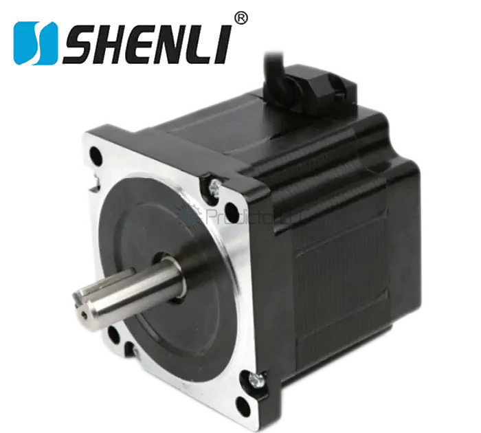 Шаговый двигатель с фланцем 86 мм (NEMA34), длиной корпуса 80 мм и тормозом 24 В, имеет защищенный кабельный ввод, момент удержания 4,5 Н*м, корпус - пластинчатая кремниевая сталь, фланцы - дюраль, высококачественные подшипники DAHL/C&U обеспечивают минимальную вероятность проявления резонанса с их собственной частотой.